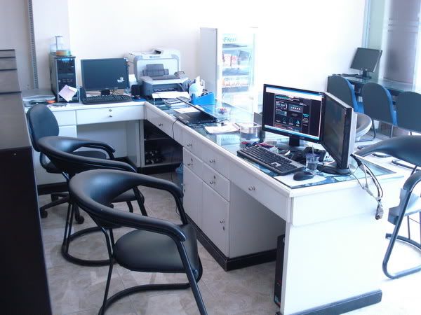 Front Desk kita, pusat kegiatan kita, mulai dari menerima tamu, print station, burn cd, scan, berfungsi juga sebagai etalase diplay barang, dan yang paling penting.... untuk terima payment :)